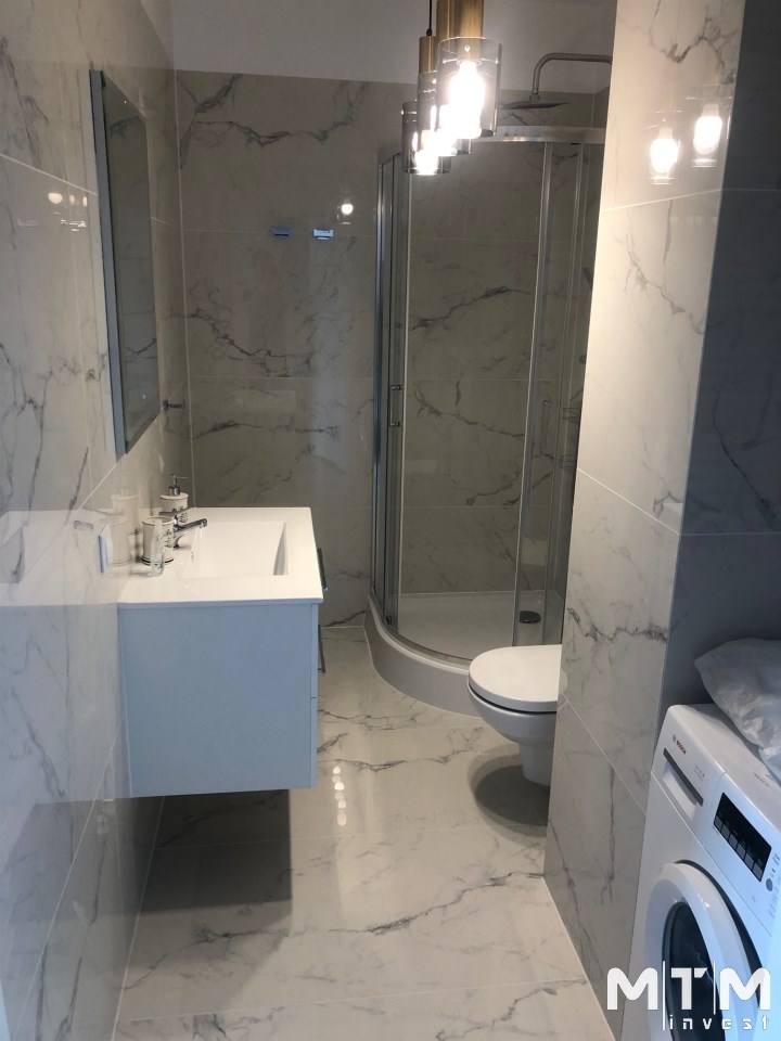 | Wyposażenie łazienki | lustro, pralka, prysznic, umywalka na szafce, WC |