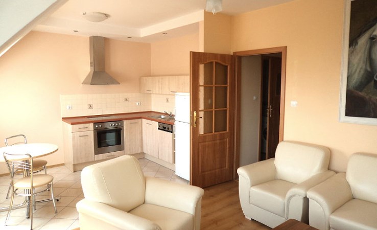 -salon z balkonem francuskim z niepowtarzalnym widokiem na Zamek Książąt Pomorskich,