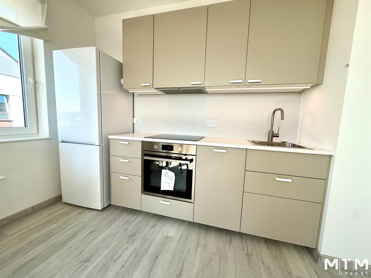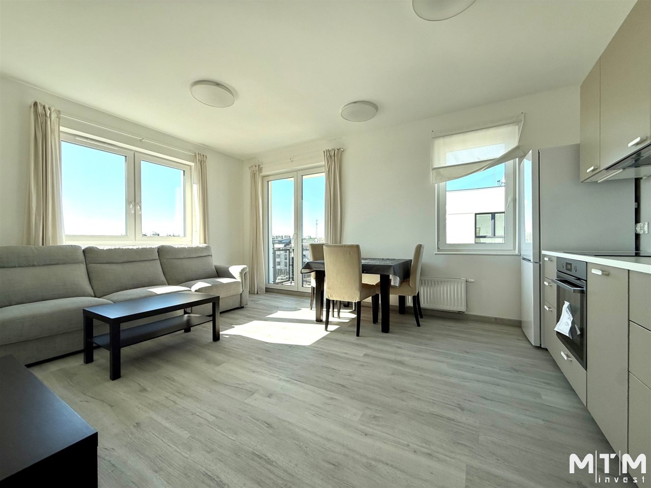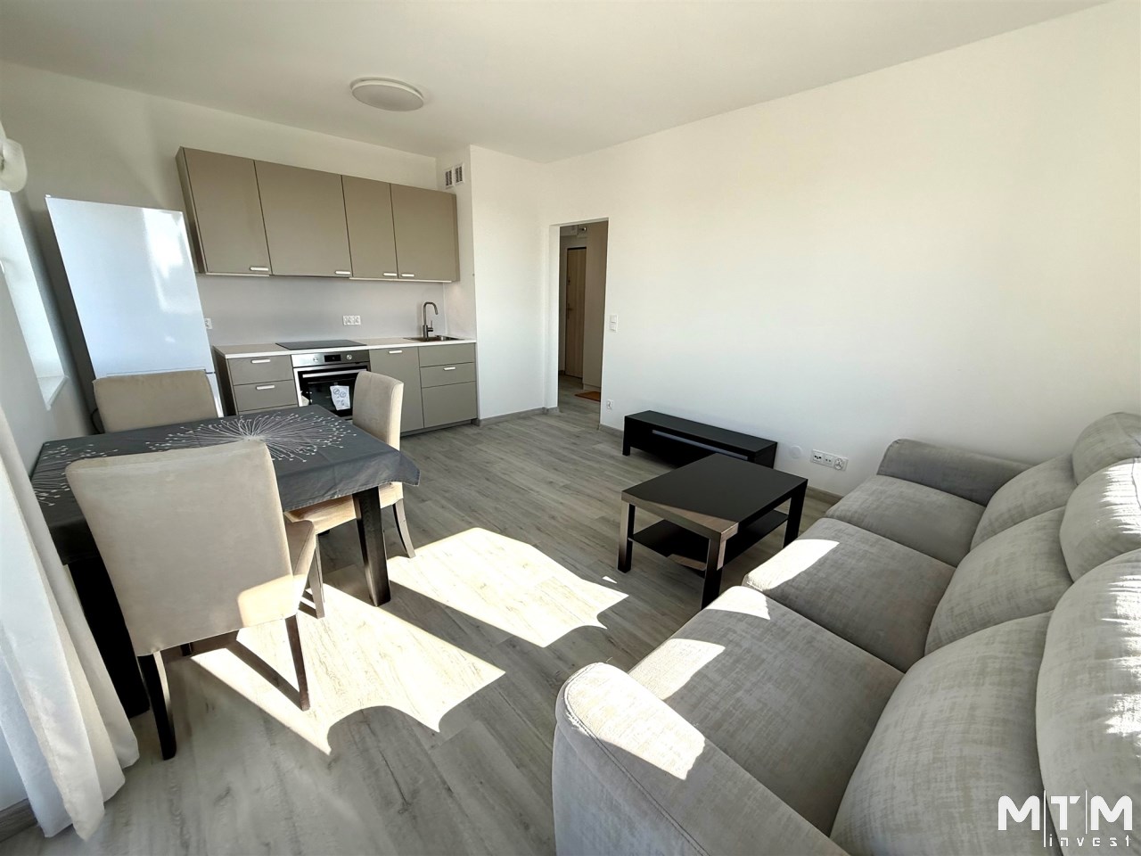 - salon z aneksem kuchennym (zabudowa kuchenna, wyposażona w sprzęt AGD - lodówka, piekarnik, płyta indukcyjna, okap, zmywarka)