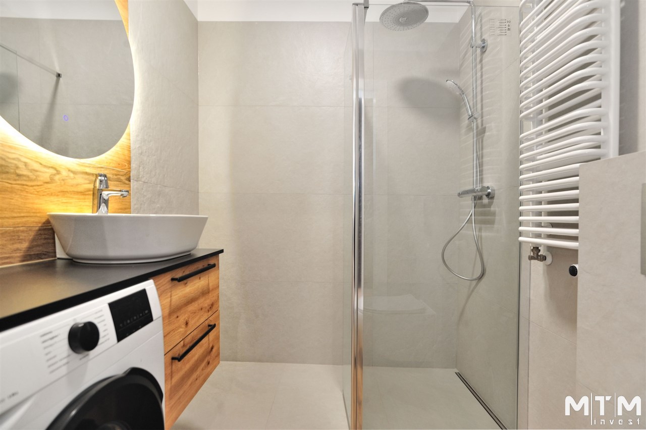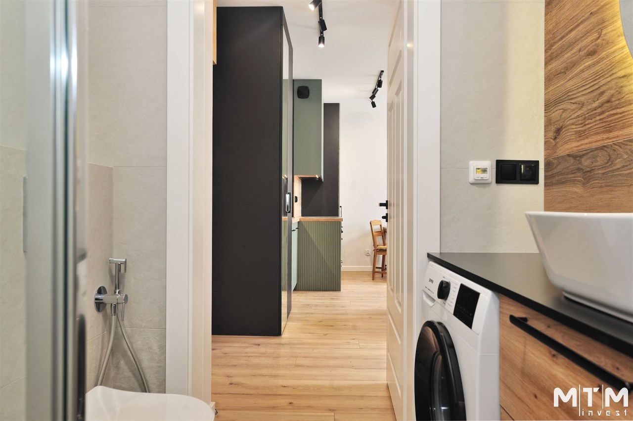 | Wyposażenie łazienki | lustro, pralka, prysznic, WC |
