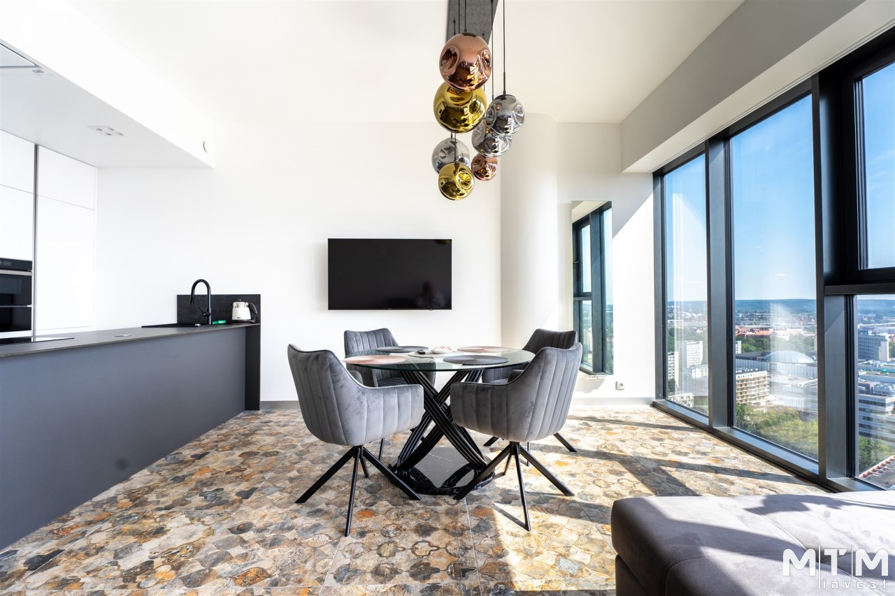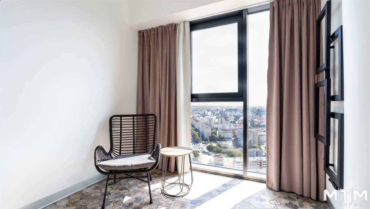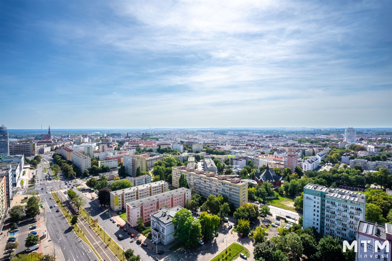 Oferta wynajmu 59 m2 apartamentu w Hanza Tower na 22 piętrze z przepięknym i niepowtarzalnym widokiem na panoramę Szczecina. Mieszkanie wykończone jest w nowoczesnym i spójnym stylu. Wyjątkowo jasne z uwagi na ogromne szklane ściany będące cechą charakterystyczną całego budynku.